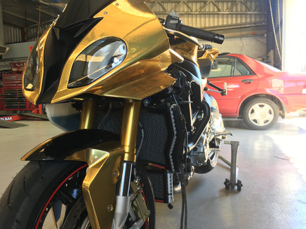 The rigid frame of the Rad Guard holds the expanded mesh in place so that hard hits by stones and any other road debris will save your core from certain damage. This rigid frame also acts as a brace to prevent the radiator core from being squashed if a side impact occurs. For example, the bike falls off the stand.