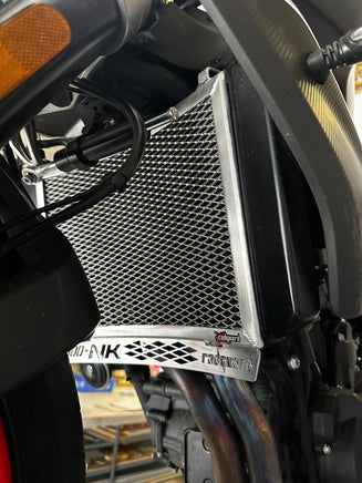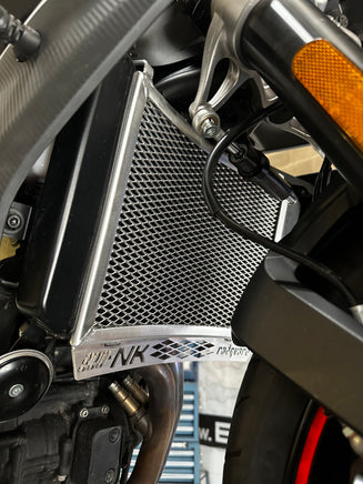 The rigid frame of the Rad Guard holds the expanded mesh in place so that hard hits by stones and any other road debris will save your core from certain damage. This rigid frame also acts as a brace to prevent the radiator core from being squashed if a side impact occurs. For example, the bike falls off the stand.