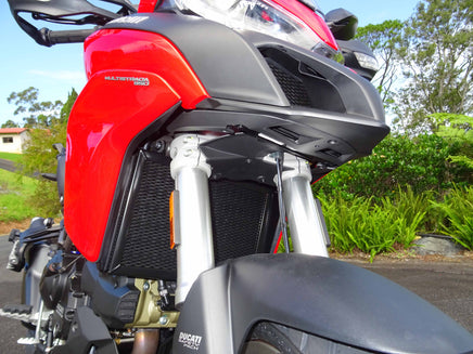 The rigid frame of the Rad Guard holds the expanded mesh in place so that hard hits by stones and any other road debris will save your core from certain damage. This rigid frame also acts as a brace to prevent the radiator core from being squashed if a side impact occurs. For example, the bike falls off the stand.