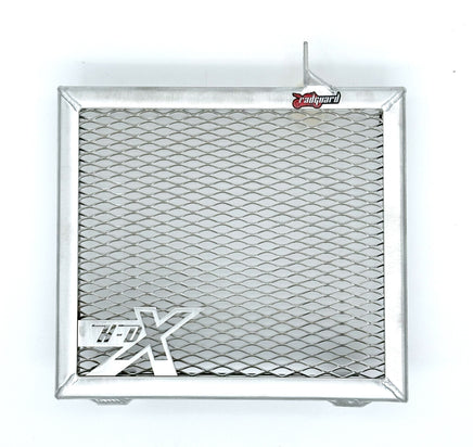 The rigid frame of the Rad Guard holds the expanded mesh in place so that hard hits by stones and any other road debris will save your core from certain damage. This rigid frame also acts as a brace to prevent the radiator core from being squashed if a side impact occurs. For example, the bike falls off the stand.