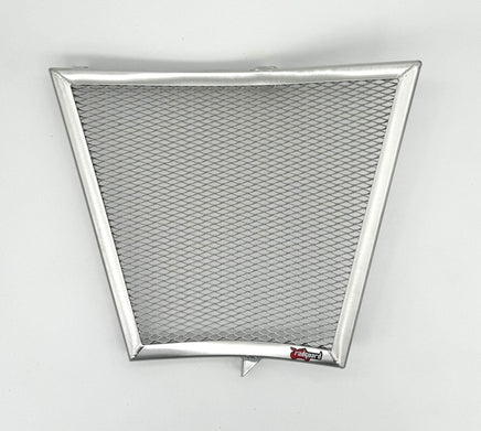 The rigid frame of the Rad Guard holds the expanded mesh in place so that hard hits by stones and any other road debris will save your core from certain damage. This rigid frame also acts as a brace to prevent the radiator core from being squashed if a side impact occurs. For example, the bike falls off the stand.