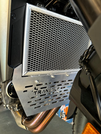 The Header Pipe Guard is made from 2.5mm thick Alloy. This bolts to our Radiator Guard using 4 x 304 M6 Stainless steel bolts. Th Header Pipe Guard CAN NOT be fitted without a Rad Guard.