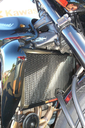 The rigid frame of the Rad Guard holds the expanded mesh in place so that hard hits by stones and any other road debris will save your core from certain damage. This rigid frame also acts as a brace to prevent the radiator core from being squashed if a side impact occurs. For example, the bike falls off the stand.