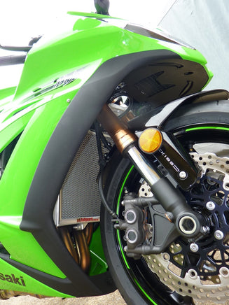 The rigid frame of the Rad Guard holds the expanded mesh in place so that hard hits by stones and any other road debris will save your core from certain damage. This rigid frame also acts as a brace to prevent the radiator core from being squashed if a side impact occurs. For example, the bike falls off the stand.