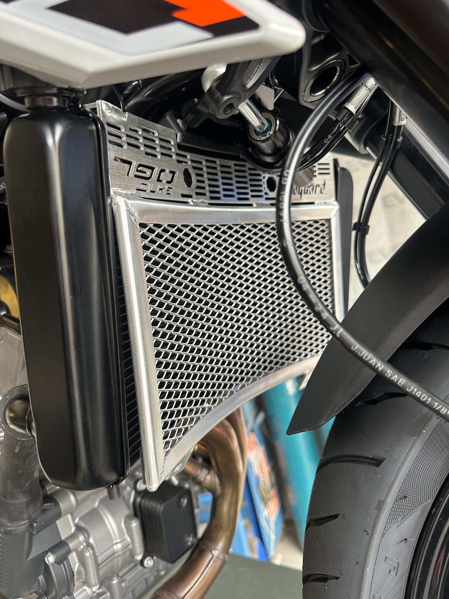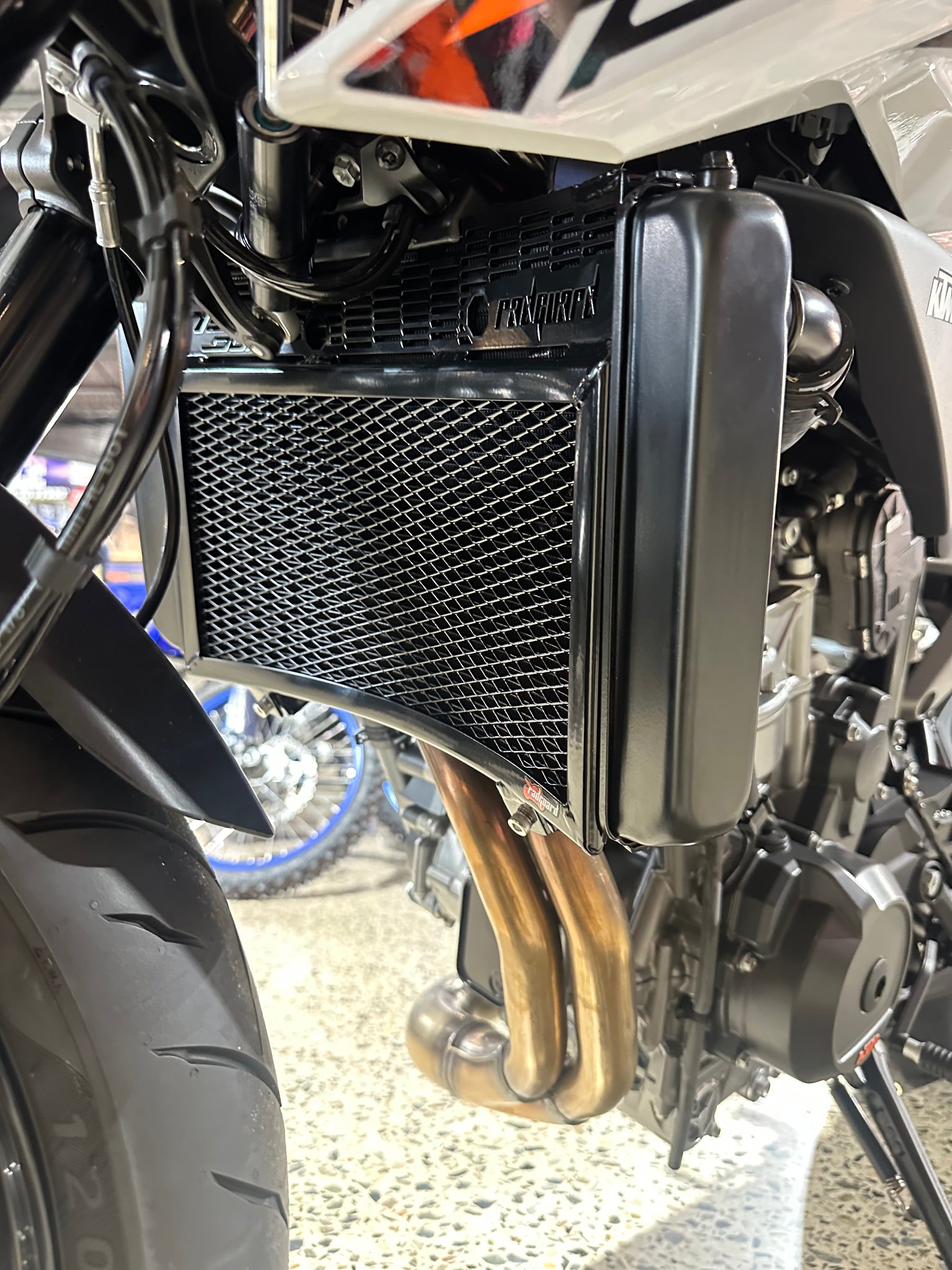 The rigid frame of the Rad Guard holds the expanded mesh in place so that hard hits by stones and any other road debris will save your core from certain damage. This rigid frame also acts as a brace to prevent the radiator core from being squashed if a side impact occurs. For example, the bike falls off the stand.