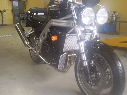 The rigid frame of the Rad Guard holds the expanded mesh in place so that hard hits by stones and any other road debris will save your core from certain damage. This rigid frame also acts as a brace to prevent the radiator core from being squashed if a side impact occurs. For example, the bike falls off the stand.
