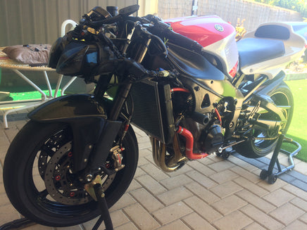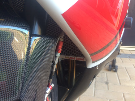 The rigid frame of the Rad Guard holds the expanded mesh in place so that hard hits by stones and any other road debris will save your core from certain damage. This rigid frame also acts as a brace to prevent the radiator core from being squashed if a side impact occurs. For example, the bike falls off the stand.