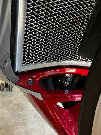 The rigid frame of the Rad Guard holds the expanded mesh in place so that hard hits by stones and any other road debris will save your core from certain damage. This rigid frame also acts as a brace to prevent the radiator core from being squashed if a side impact occurs. For example, the bike falls off the stand.